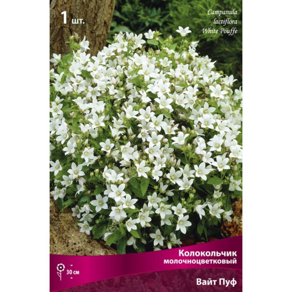 Колокольчик молочноцветковый Вайт Пуф: белоснежные цветы для сада и альпинария — легко выращивать, подходит для тени и солнца, доставка из Нидерландов.