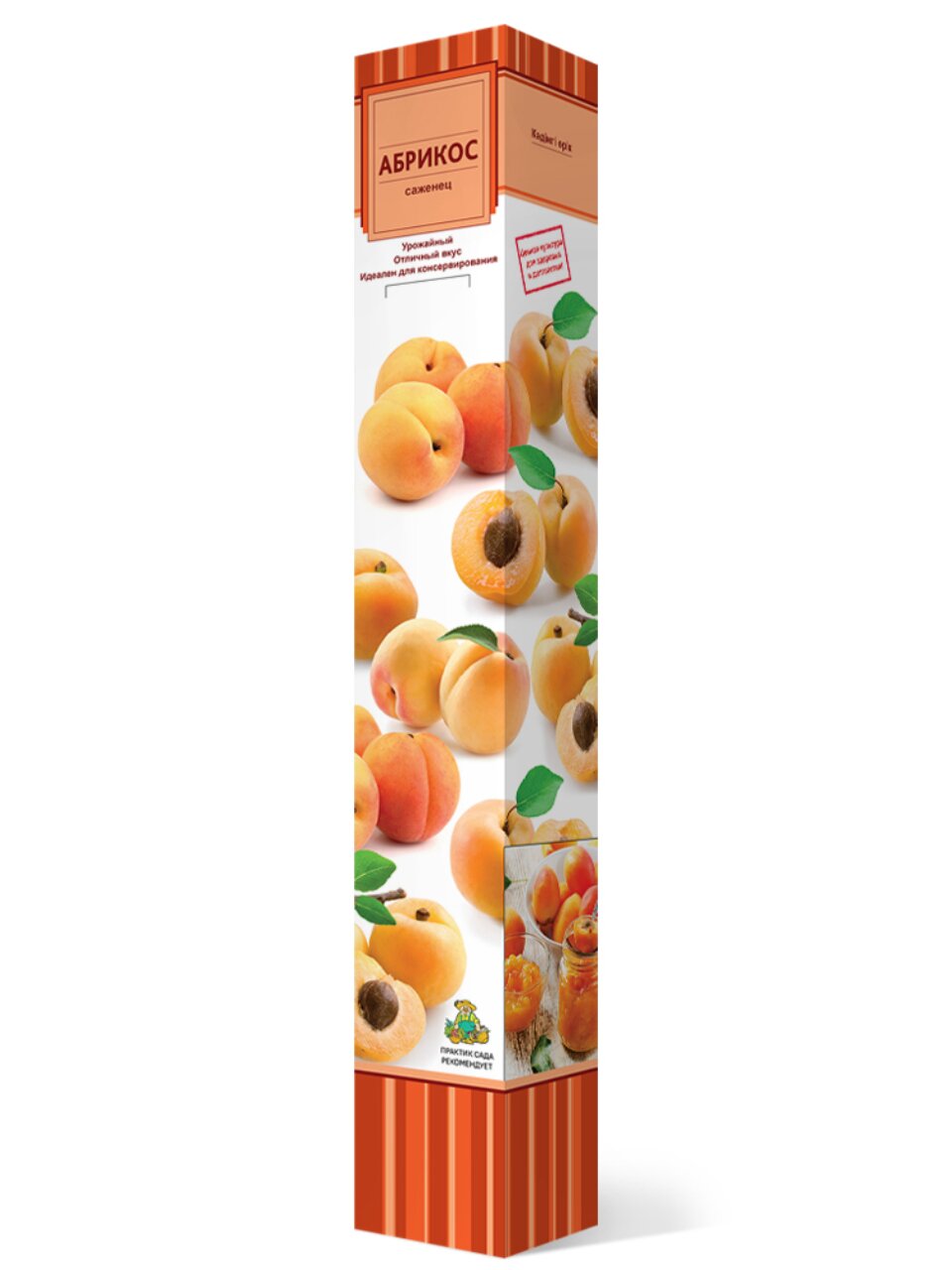 Тип посадочного материала — саженцы абрикоса, цвет плодов — насыщенно оранжевый, рекомендуемое место посадки — солнечные участки.